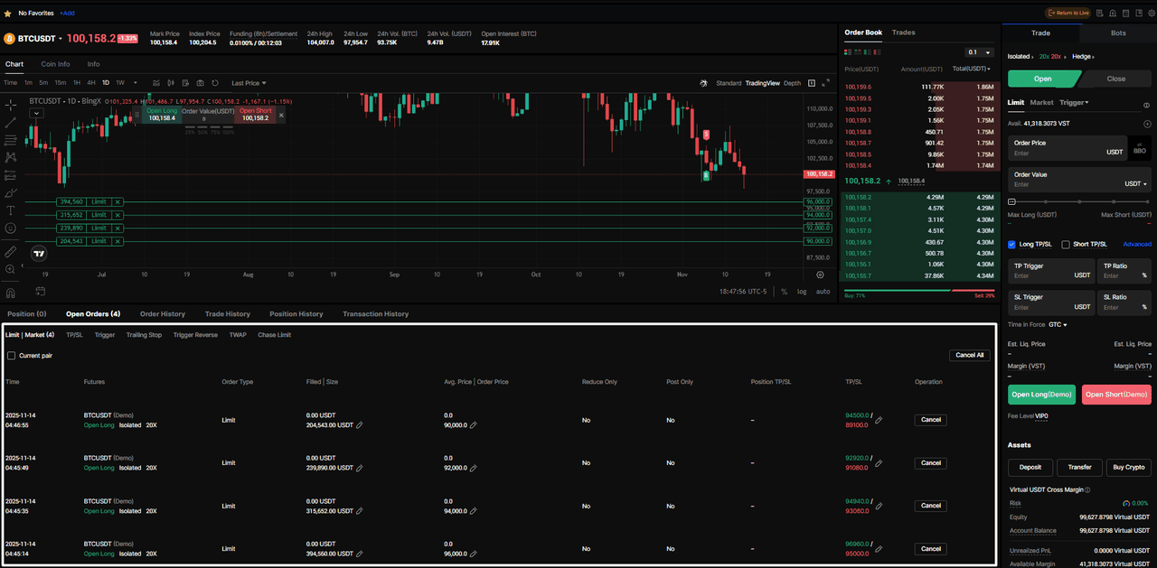 الخطوة 3: ضع أوامر شراء محددة متعددة على BingX