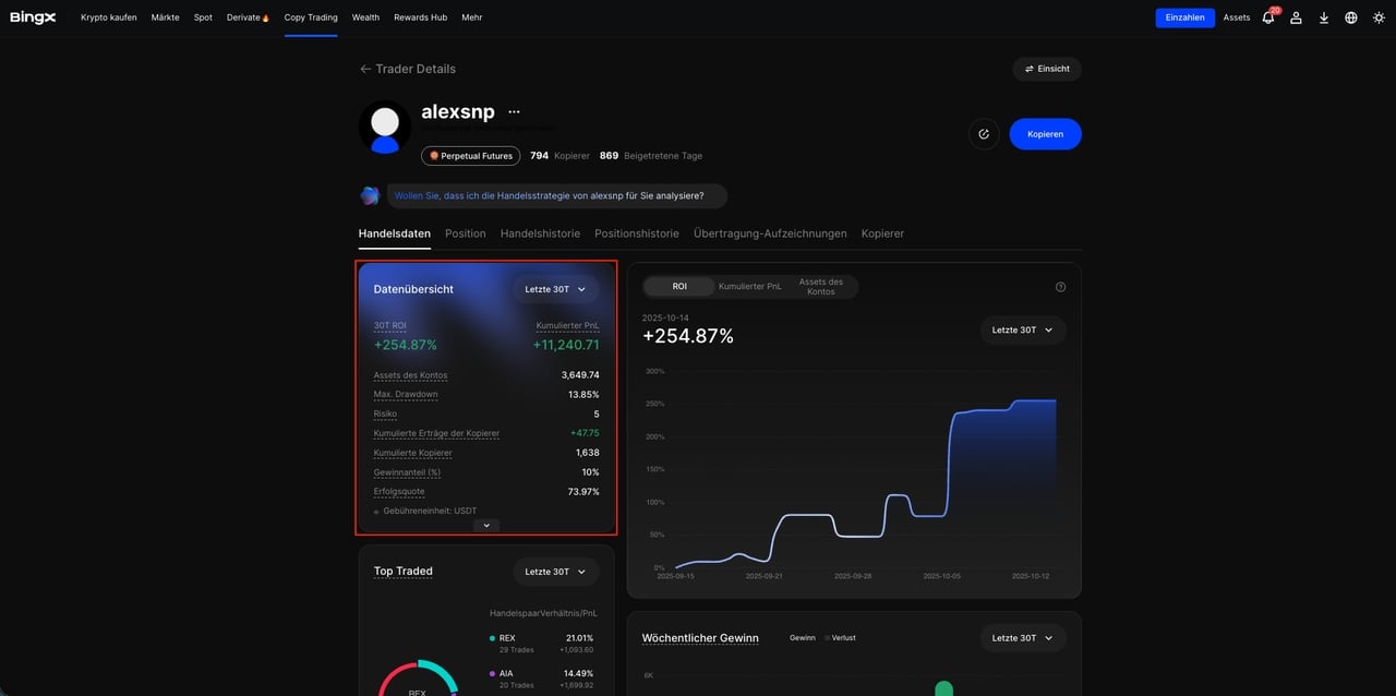 Copy Trading. Top-Trader veröffentlichen in 30 Tagen zwei- und dreistellige ROI-Werte. Immer mehr Nutzer folgen daher Expertenstrategien, statt alleine zu traden. Das BingX Copy Trading kombiniert AI-gestützte Trader-Empfehlungen mit der Replikation von Trades in Echtzeit. So nimmst du ohne fortgeschrittene Erfahrung am Kryptomarkt teil. Dieser Leitfaden zeigt dir Auswahl, Risikokontrollen und Monitoring mit Copy Trading 2.0 und den Einblicken von