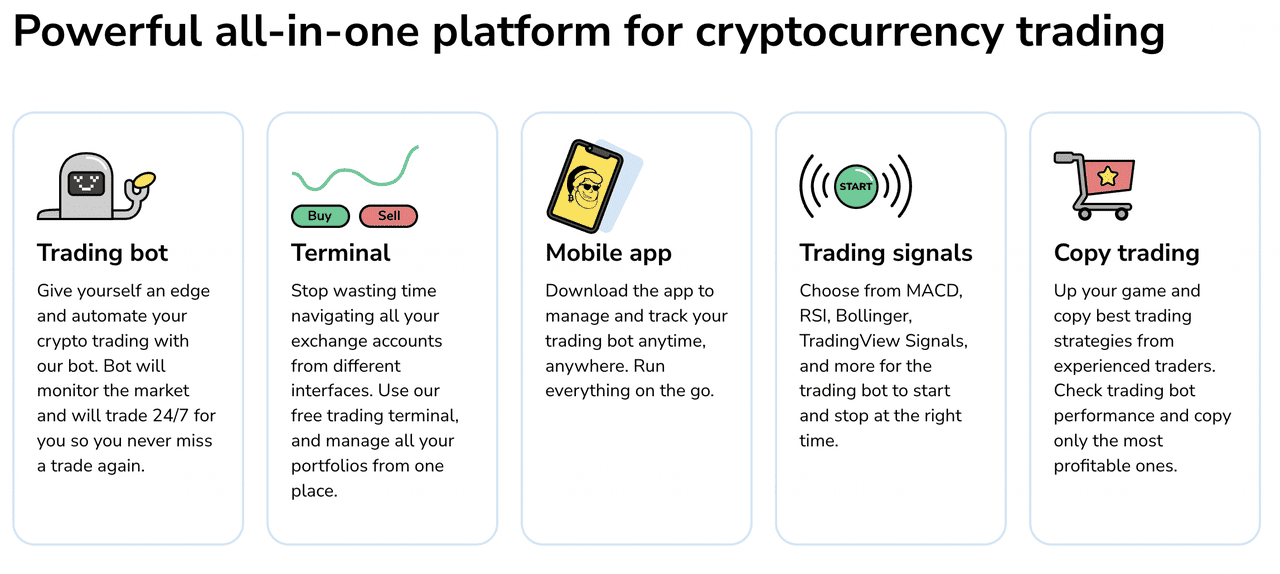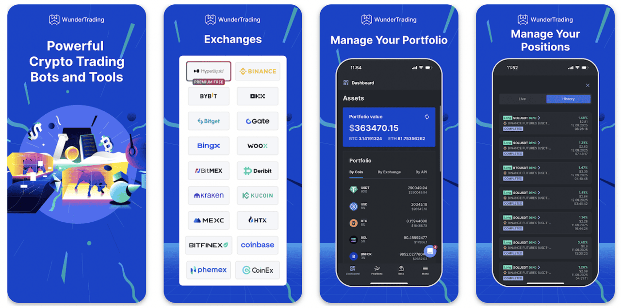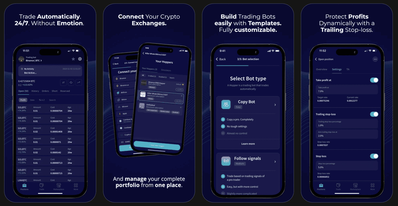 The free trading terminal unifies multiple exchange accounts (like Binance, OKX, and more) into one easy interface for portfolio management. The mobile app lets you track and adjust bots anytime, anywhere. Use trading signals like