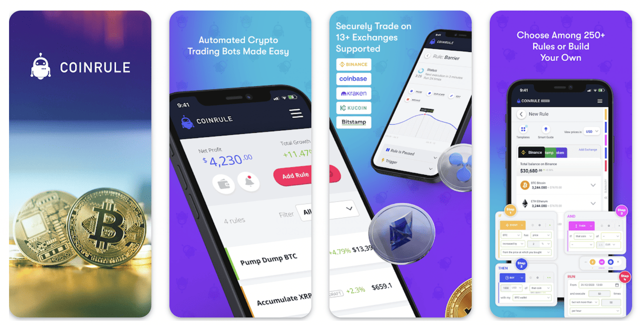 Start free and automate your strategies effortlessly, build custom bots in minutes using intuitive conditions, powerful indicators, time-based logic, and 350+ pre-built templates to catch pumps, avoid dips, and run 24/7 across more than 20 top exchanges and chains like Binance, Coinbase, Kraken, OKX, Bybit, KuCoin, Bitget, and on-chain networks. With military-grade security and encryption, plus seamless integration for spot and futures trading, Coinrule puts full algorithmic control in your hands without any coding required.