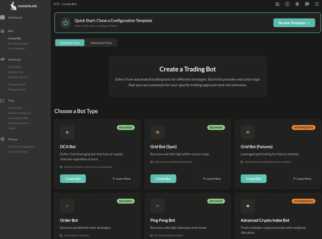 Deepest customization via HaasScript (visual + code editors) for market making, arbitrage, scalping, and proprietary logic. Built-in backtesting and paper trading suit advanced users and developers. Users get instant access to all features, including backtesting, paper trading, and live trading across 20+ exchanges.