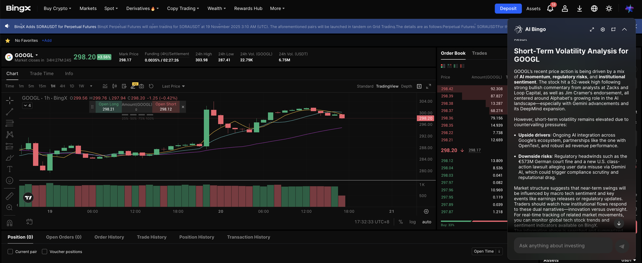 Fuente: Futuros de la Acción Tokenizada de Google GOOGL en BingX