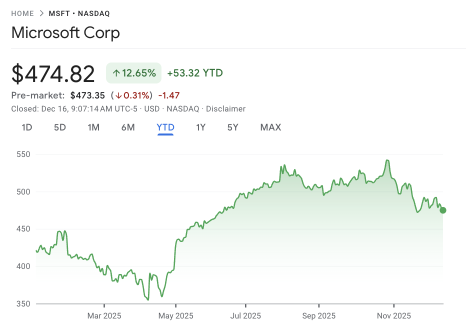 La estrategia de IA de Microsoft en 2025 estuvo marcada por su profunda y creciente asociación con OpenAI, que se convirtió en un motor clave del crecimiento de Azure y la adopción de IA empresarial. Los modelos de OpenAI se integraron cada vez más en el ecosistema de Microsoft, incluidos Azure OpenAI Service, Microsoft 365 Copilot y GitHub Copilot, acelerando el cambio de casos de uso experimentales a despliegues a escala de producción. Este posicionamiento reforzó el papel de Microsoft como una capa central de infraestructura y distribución para la IA empresarial. A mediados de diciembre de 2025, las acciones de Microsoft (MSFT) cotizaban alrededor de $474, generando aproximadamente un +12.6% de rendimiento en lo que va del año después de recuperarse de un mínimo de primavera en el rango de los $360, respaldadas por una fuerte demanda de la nube e ingresos empresariales recurrentes vinculados a las cargas de trabajo de IA.