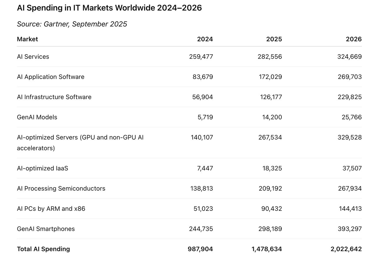 Fuente: Previsión de Gartner (septiembre de 2025)