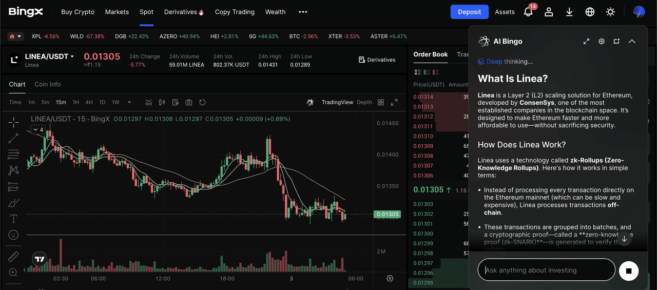 Par de trading LINEA/USDT en el mercado al contado impulsado por los insights de BingX AI