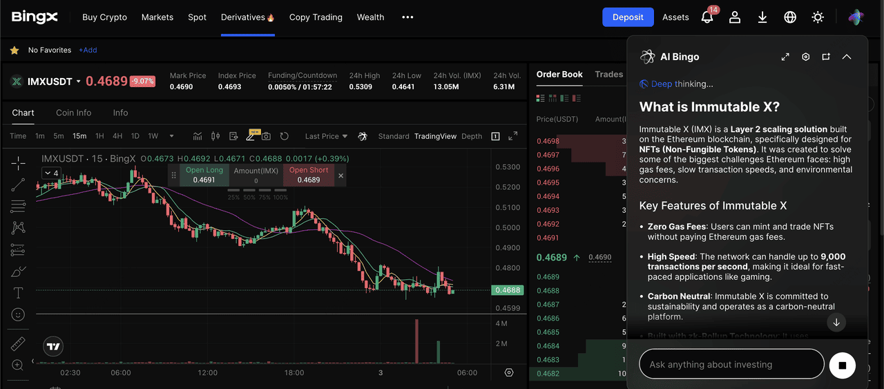 Contrato perpetuo IMX/USDT en el mercado de futuros impulsado por BingX AI