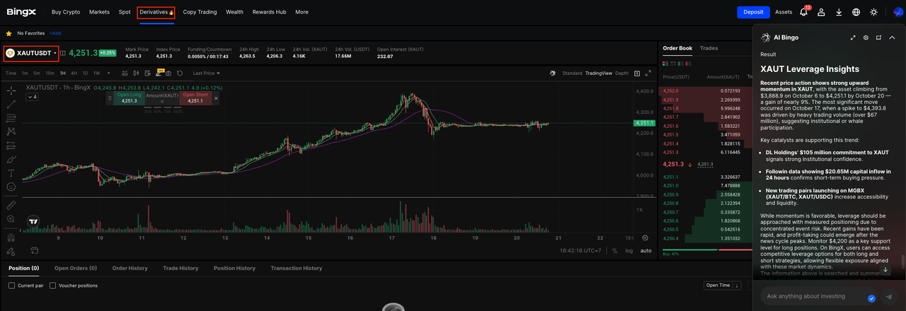 Contrat perpétuel XAUTUSDT sur les futures BingX alimenté par AI Bingo
