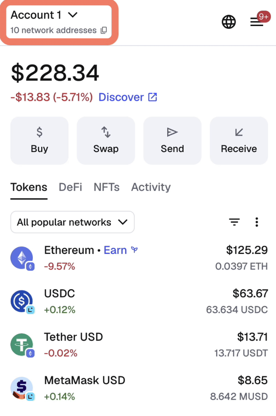 ステップ1:MetaMaskウォレットを更新し、ビットコインアカウントにアクセスする