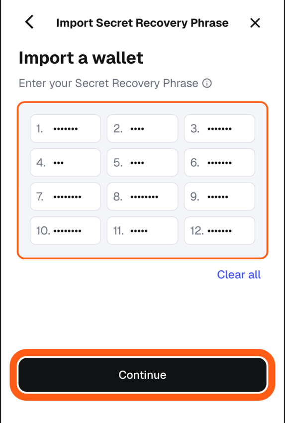 • これにより、ビットコインアカウント(および任意のEVM/Solanaアカウント)が1か所に復元されます。