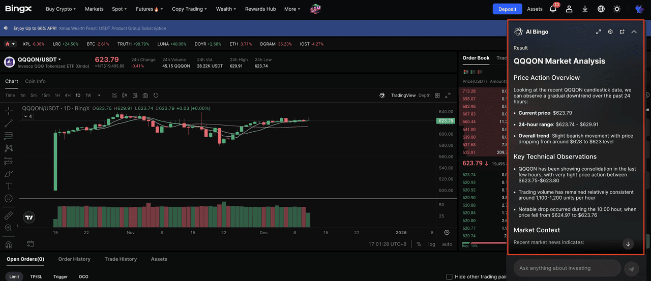 Krok 4: Użyj dostępnych narzędzi analitycznych: BingX zapewnia wbudowane narzędzie AI
