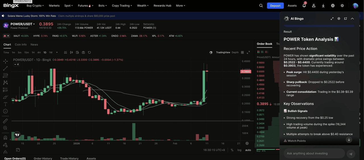 Se você está procurando manter $POWER para crescimento de longo prazo do ecossistema ou capitalizar na descoberta de preço de curto prazo, a BingX oferece um conjunto amigável de ferramentas. Ao integrar análise impulsionada por IA pela BingX AI com mercados de alta liquidez, a plataforma permite aos traders executar entradas precisas e gerenciar risco efetivamente durante períodos de alta volatilidade.