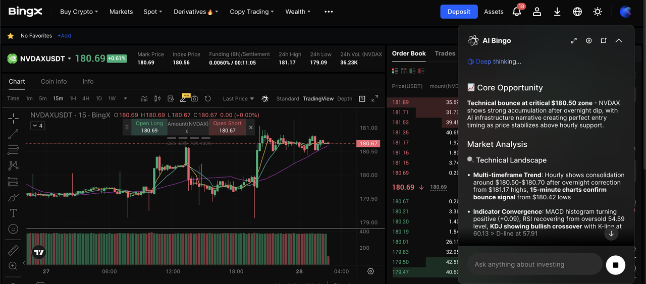 Contract perpetuu NVDAX/USDT pe piața futures, susținut de AI BingX