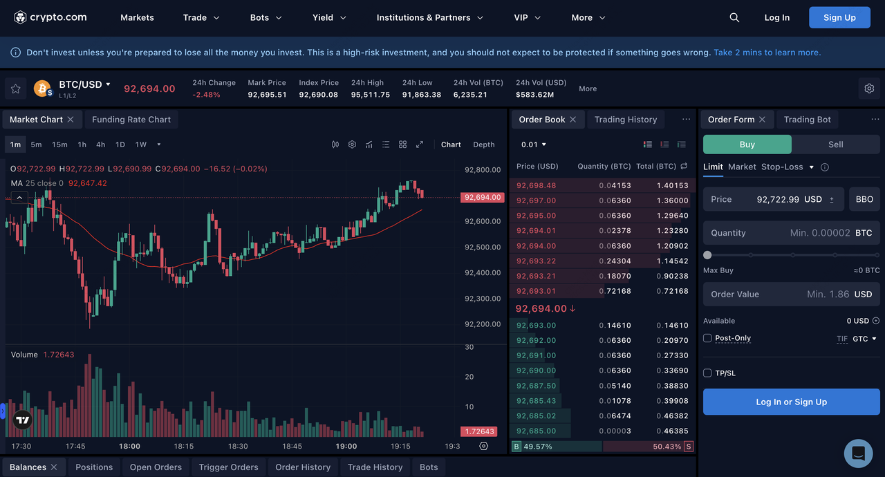 giao dịch hợp đồng dễ tiếp cận năm 2026 thông qua nền tảng sàn của mình, với hợp đồng vĩnh viễn và giao hàng hỗ trợ đòn bẩy lên đến 50x trên BTC và ETH (thấp hơn trên altcoin như 20x cho meme coin), phí cạnh tranh bắt đầu từ 0% maker và 0,05% taker (giảm xuống thấp nhất 0,011% maker và 0,03% taker ở khối lượng cao trên 5 triệu USD hàng tháng), và khối lượng hợp đồng 24 giờ được báo cáo tính bằng tỷ USD (ví dụ, khoảng 3,9 tỷ USD trong các ảnh chụp gần đây). Nó thu hút người dùng tìm kiếm hệ sinh thái tất cả trong một với bảo mật mạnh mẽ, truy cập di động và tích hợp với staking/phần thưởng CRO, mặc dù thanh khoản trên các hợp đồng giao hàng dài hạn vẫn thấp hơn và giới hạn đòn bẩy bảo thủ hơn so với các nền tảng phái sinh chuyên biệt.