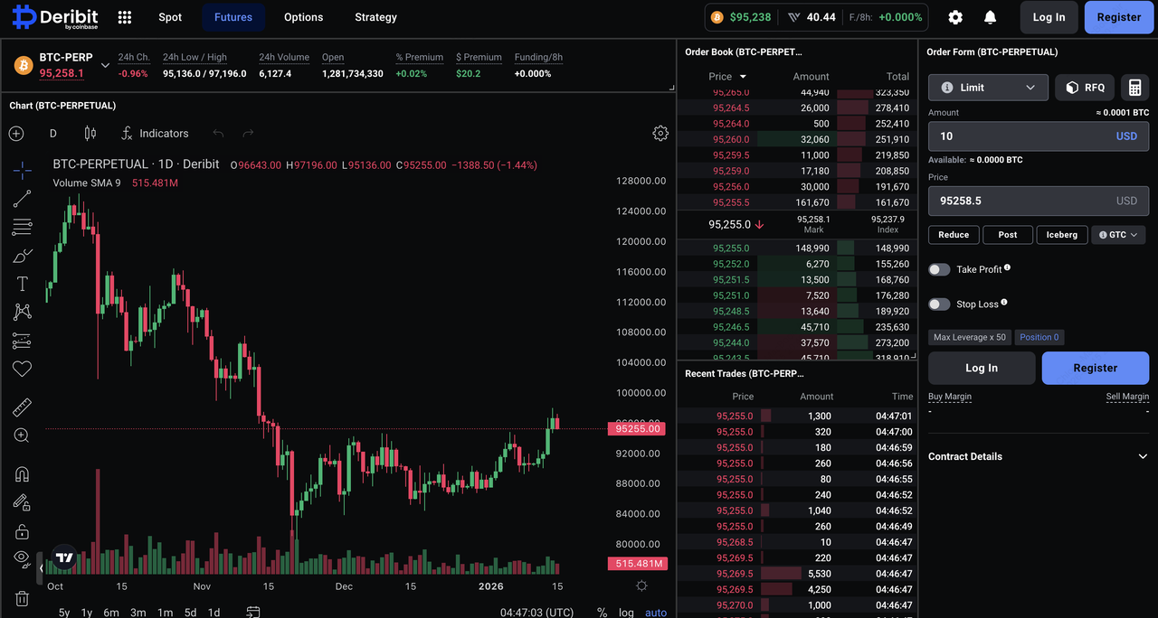 hợp đồng và quyền chọn đòn bẩy cao, duy trì thị phần thống trị khoảng 85% trong quyền chọn BTC và ETH với khối lượng