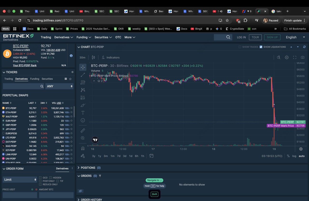 BTC-USDT. Bitfinex phù hợp với các nhà giao dịch hướng đến độ chính xác và tổ chức với các tính năng như bảo vệ quỹ bảo hiểm và các loại lệnh có thể tùy chỉnh, mặc dù truy cập Mỹ bị hạn chế và danh mục nhỏ hơn so với các đối thủ thị trường đại chúng.