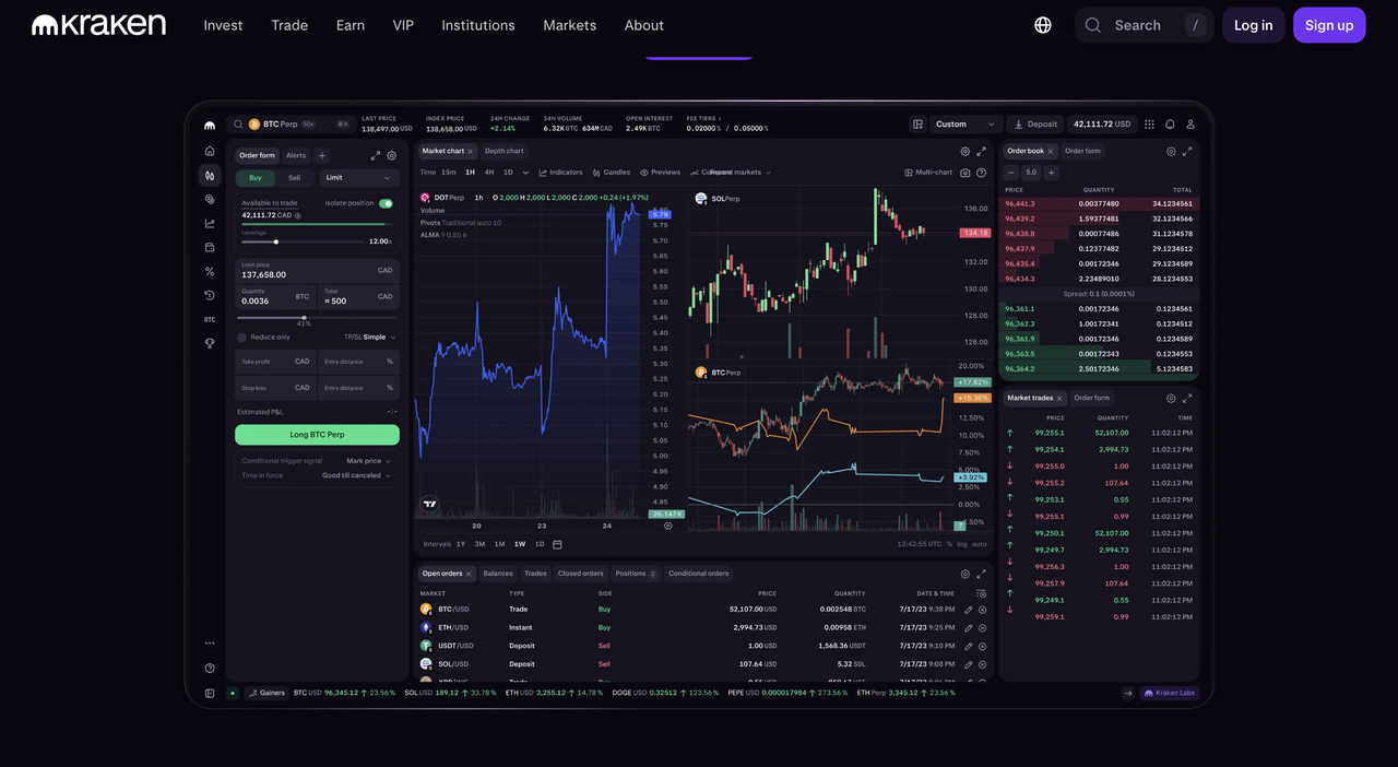 hợp đồng hàng ngày đáng kể thường là hàng trăm triệu đến tỷ USD, với hơn 300 hợp đồng vĩnh viễn, phí thấp bắt đầu từ 0,02% và các công cụ như biểu đồ nâng cao và tự động hóa điều khiển API. Mặc dù mạnh mẽ về độ tin cậy và tích hợp với cổng tài chính truyền thống, các tính năng AI của Kraken bị hạn chế hơn so với các hệ thống đa tác nhân, mặc dù nó duy trì điểm tin cậy cao trên 95% trên các cuộc kiểm toán độc lập và hỗ trợ môi trường giao dịch được quy định đầy đủ tại nhiều khu vực pháp lý.